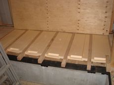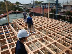断熱材を敷き込み、その上に合板を敷いていきます。