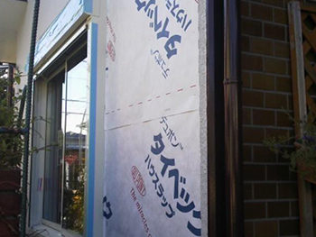 次にベニヤ板を貼り、その上に通気防水シート「タイベック」を貼ります。